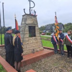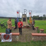 Pierwsza, bo tuż po godz. 8.00, wyruszyła 40-to osobowa grupa piesza, którą poprowadzili członkowie KTP “Z buta” Autokarem udali się do Bobrowej, gdzie przy pomniku oddano hołd partyzantom walczącym na tym terenie, a następnie wyruszono na trasę w kierunku Trzcianki. Tam zapalono znicze w miejscu upamiętniającym śmierć Tadeusza Golki – organizatora Oddziału Batalionów Chłopskich. Cykliści w liczbie 52 osób wyruszyli na trasę po godz. 9.00. Obrali kierunek na Łyszkowice, gdzie na miejscowym cmentarzu parafialnym złożono kwiaty i zapalono znicze na grobie Henryka Kocemby – zastępcy dowódcy przyjmującego zrzut w Czatolinie. Następnie grupa się rozdzieliła na trasę krótszą prowadzącą do Czatolina i dłuższą, która odwiedziła miejsca pamięci w Bobrowej i Trzciance. Na wszystkich trasach o wydarzeniach sprzed lat opowiadali nasi koledzy – Adam i Andrzej, którzy są również członkami łowickiego Koła Przewodników. Ok. godz. 13.00 wszystkie grupy dotarły do pomnika w Czatolinie. Wartę zaciągnęły poczty sztandarowe PTTK Oddział w Łowiczu i Ochotniczej Straży Pożarnej w Czatolinie. Uroczystości rozpoczęły się hymnem narodowym. Wśród zgromadzonych gości była delegacja władz Gminy Łyszkowice, okoliczni mieszkańcy, oraz przedstawiciele grupy motocyklowej Thunder Independent. Po złożeniu kwiatów, kol. Adam Szymański opowiedział zgromadzonym historię zrzutów. Wiceprzewodniczący Rady Gminy Łyszkowice Piotr Klimkiewicz podziękował zgromadzonym za uczestnictwo oraz wszystkim, którzy przyczynili się do organizacji tego wydarzenia.